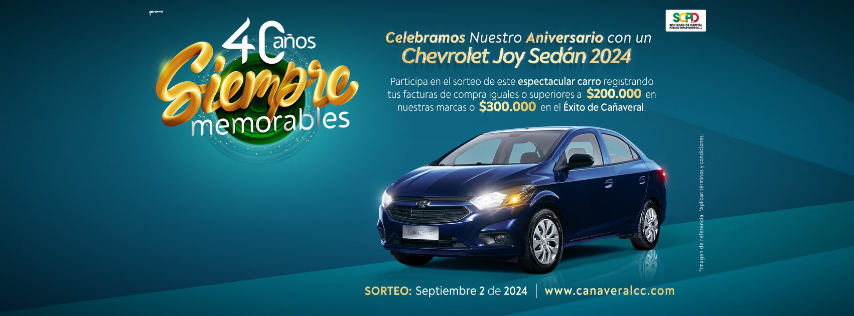Participa en el concurso de Centro Comercial Cañaveral y gana 1 auto Chevrolet Joy 2024, si quieres ser ganador tienes que registrar tus facturas de compras iguales o superiores a $200.000 en las marcas del Centro Comercial o de $300.000 en el Éxito Cañaveral.
